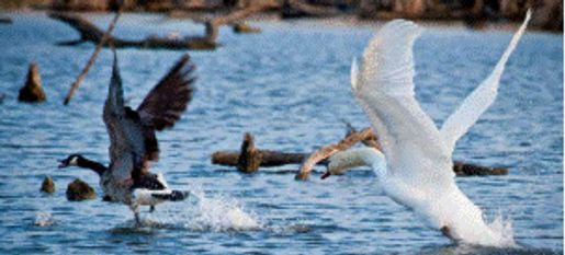 No. While geese populations may decrease initially with swans present, the geese will eventually return and both species will live together in unity. In fact, swans on a body of water often indicate to a gaggle of flying geese that there is plenty of food below.